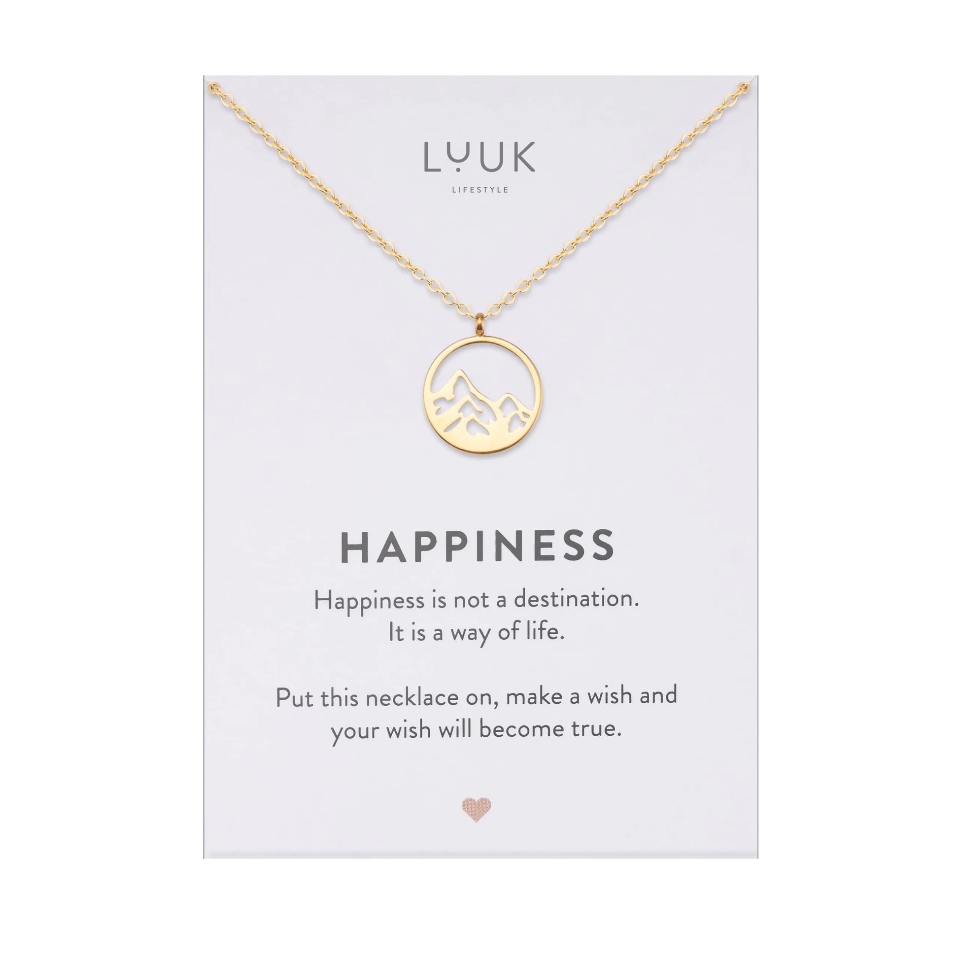 LUUK LIFESTYLE Gold Mountain Peak Necklace with Coin Pendant & Happiness Card