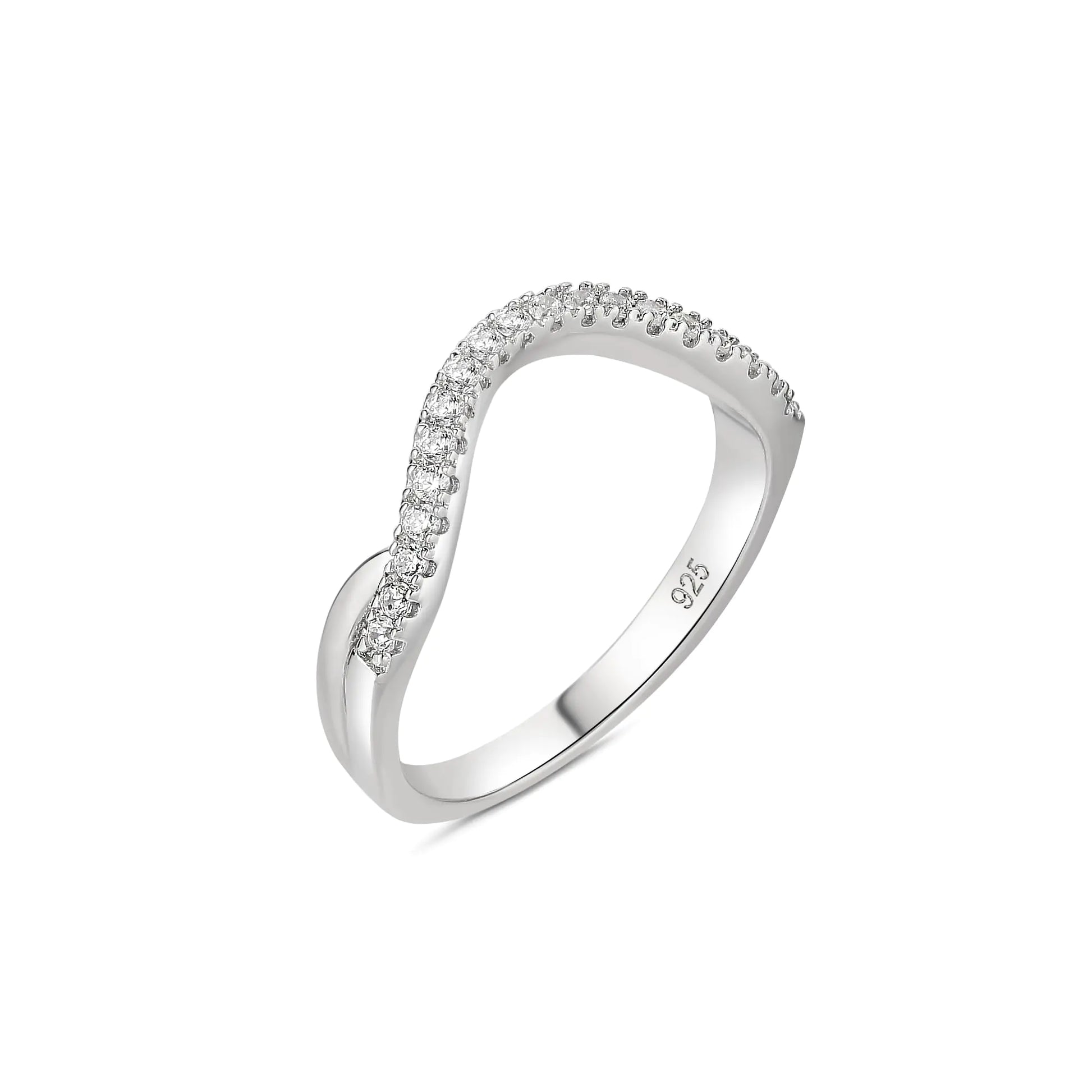 Newshe 925 Silver Wishbone Wedding Band, Stacking Eternity Ring with 5A CZ, Size 5
